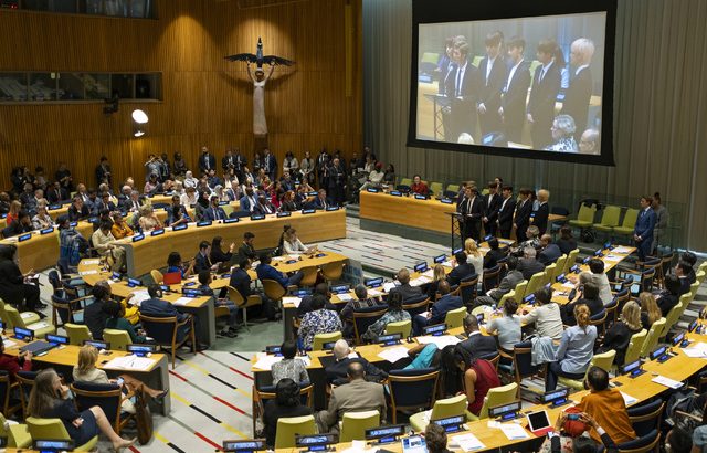 防弾少年団が24日午後(現地時間)、米国ニューヨークの国際連合信託統治理事会会議場で行われた国連児童基金(ユニセフ)青年アジェンダ「ジェネレーション・アンリミテッド」パートナーシップ発足記念イベントに出席し、発言を行った。